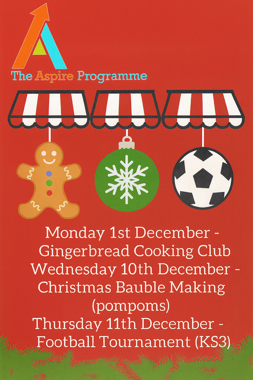 Our Aspire Clubs begin on the week beginning the 1st September, this is an opportunity for students to try new activities, make new friends and enjoy activities in a safe space after school. Hot food is served after the clubs finish at 4pm and all activities are free to take part in. So why not come along and join in whether you are sporty, arty or just want to try something new – speak to Mr Turner or Miss Fisher to find out more, or just come along to a club.